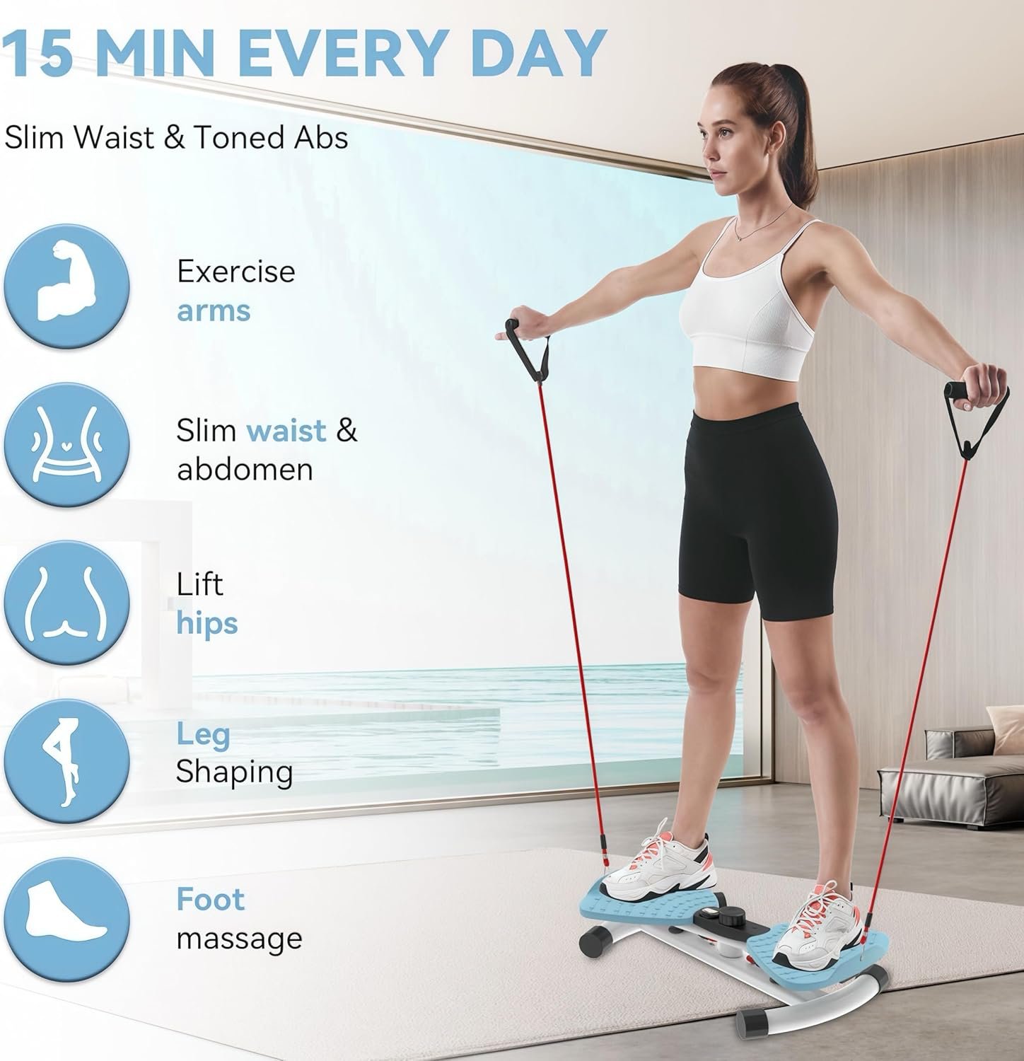 - 【2-in-1 Twist Board for Full-Body Exercise】 Combine twist exercise machine motions with resistance bands (included) to engage legs, abdomen, and back muscles. Ideal for waist twister machine exercise, it also features a foot massage surface to stimulate blood flow while you work out.